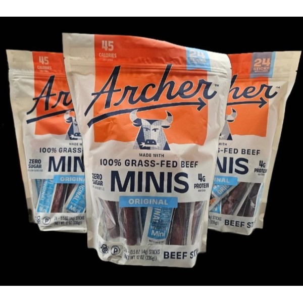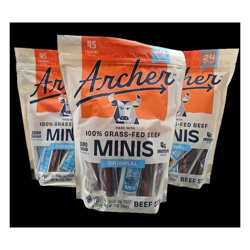 Country Archer 3 Country Archer Original Mini Beef Sticks (24 Pack each) Grass Fed.
