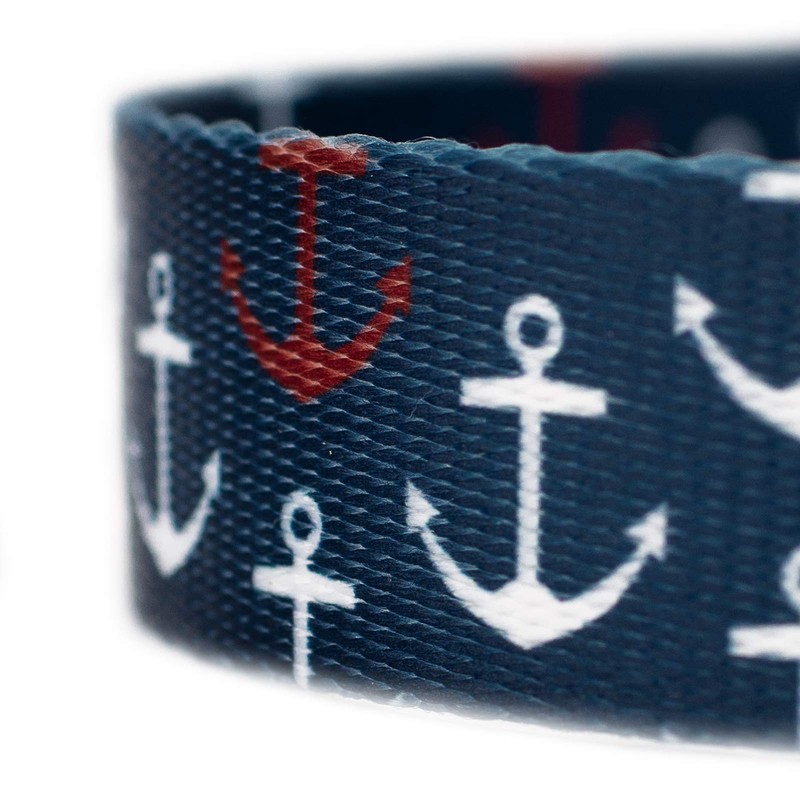 - ANCHORS AWAY | You’ll be happy as a clam using our Anchors Away Polyester Webbing. We may have gone overboard with our gorgeous white anchors printed on a deep navy background, but we think knot.
