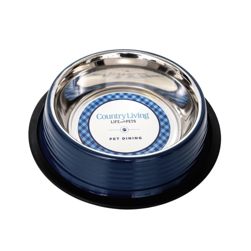 Country Living Set of 2 Ribbed No-Tip Non-Skid Pet Bowls - Poseidon Blue (24 oz) - Durable & Safe for Cats & Dogs - Prevents Spills - Ideal for Small to Medium Pets - Easy to Clean & Maintain