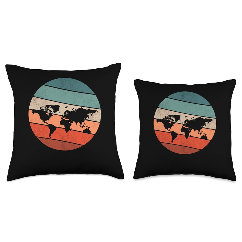 Country World Map Traveler Globe Retro World Map Throw Pillow