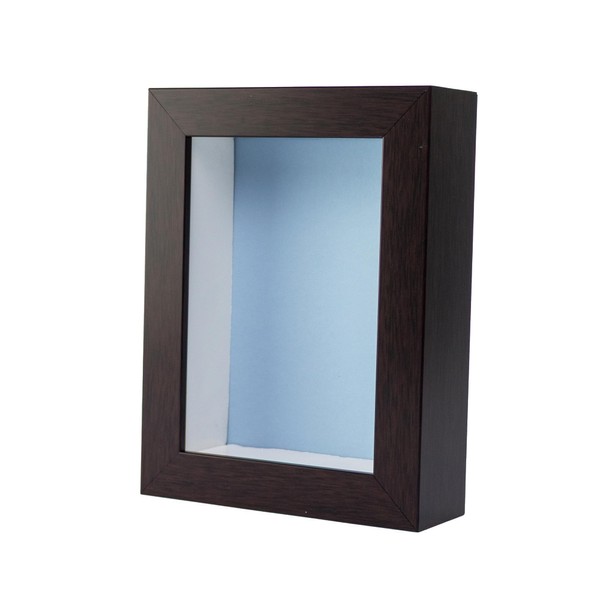 CountryArtHouse 5x7 Brown Shadow Box Frame with A 1 3/4" Usable Depth Includes Baby Blue Acid-Free Backing, UV Resistant Acrylic, & Hanging Hardware