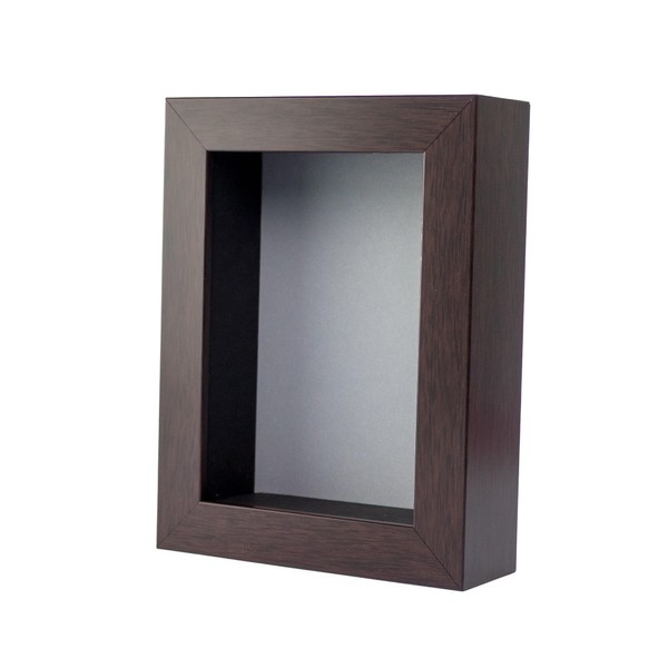 Display cherished keepsakes, memorabilia, or dimensional art in this sleek brown wood shadow box frame with interior dimensions of 5x7 inches and a generous 1 3/4 inches of usable depth, it's perfect for showcasing layered or 3D items. The UV resistant frame grade acrylic front protects your display from dust, fading, and everyday wear so your story stays preserved and on display. Includes our grey 4-ply acid-free backing for added protection and a pop of color. The wood shadow box frame has a usable depth of 1 3/4 inches and an overall size of 7x9 inches. Comes with a shatter-resistant acrylic front, acid-free backing, and wall hanging hardware. The hanging hardware is included but not pre-installed, allowing you to easily attach it for vertical or horizontal display. Proudly handcrafted in the USA with care.