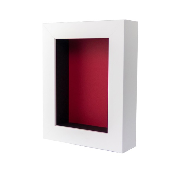 CountryArtHouse 5x7 White Shadow Box Frame with A 1 3/4" Usable Depth Includes Red Acid-Free Backing, UV Resistant Acrylic, & Hanging Hardware