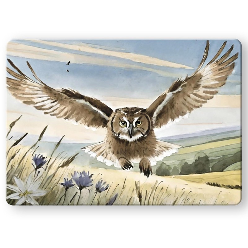 Countryside Critters Tempered Glass Cutting Board - 285x200mm Textured Chopping Board - Owl