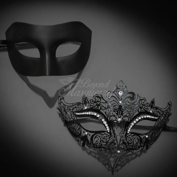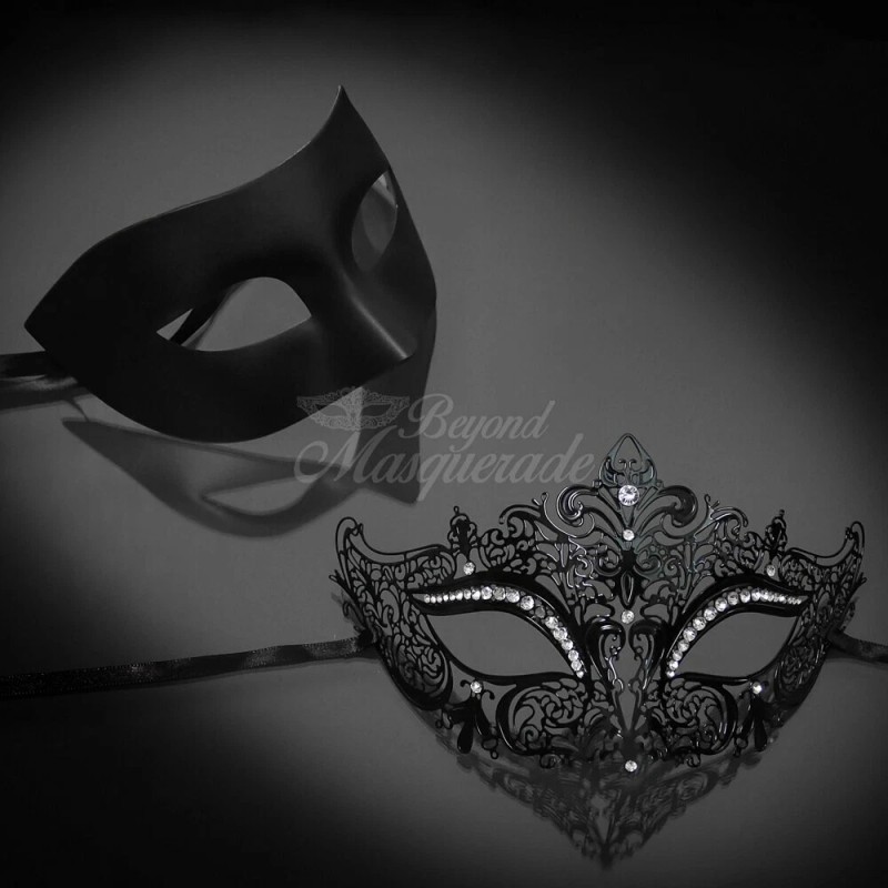 Couple's Masquerade Masks | Luxury Masquerade Masks Black/Black