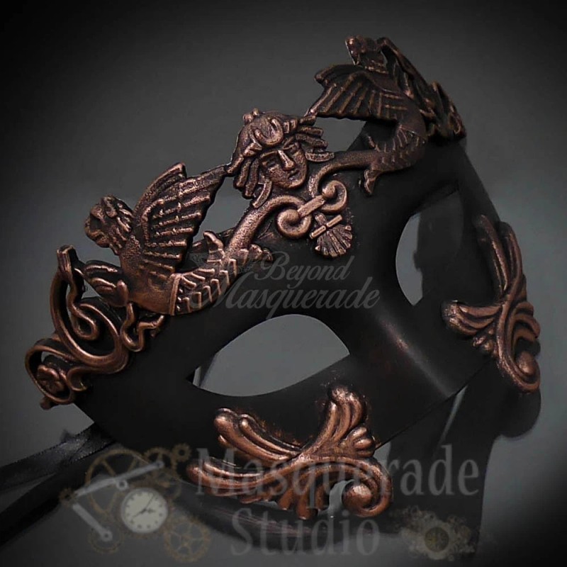 Couples Copper Roman and Rose Gold Dragon Costume Party Masquerade Masks Set