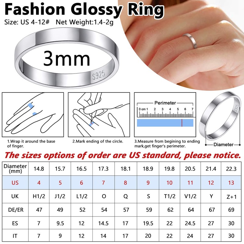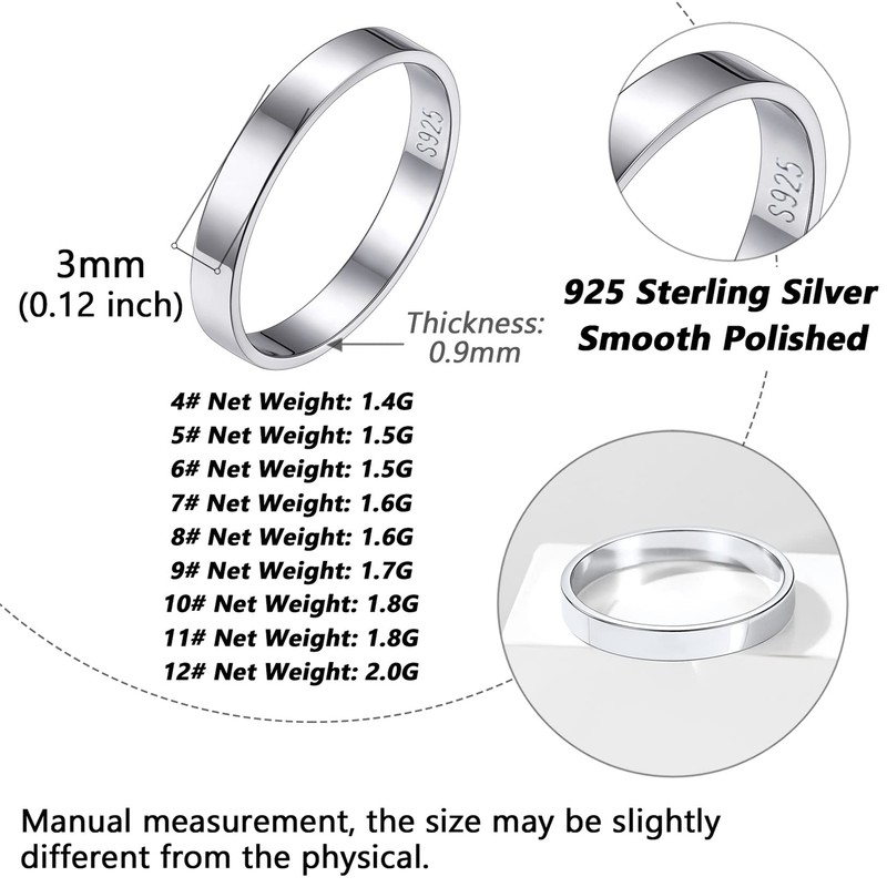 - ⭐⭐⭐Wedding Engagement Band⭐⭐⭐Ring size: 4, 5, 6, 7, 8, 9, 10, 11, 12(US), ring width: 3mm(0.12inch), thickness: 0.9mm, weight: 1.4g-2.0g/piece, fashionable pure silver band rings, perfect as couple rings set, never outdated, a nice gift choice for your family, lovers, partners or friends to tell them how special and important they are.