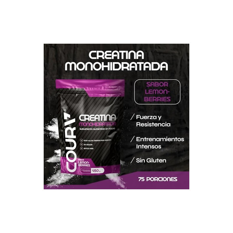 🌟 ⭐ COURA Creatina Monohidratada - Creatina Gym - Suplemento Alimenticio en Polvo - Fuerza y Resistencia - Ideal para Entrenamientos Intensos - Sin Azúcar (450 g, Lemon-Berries) ⭐ 🌟