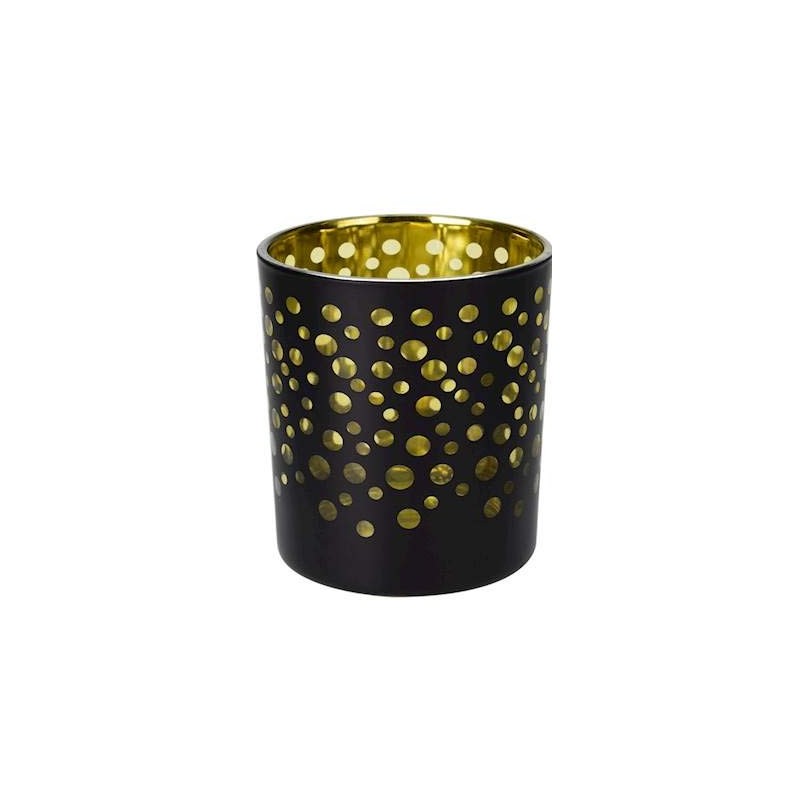 Courtney's Candles Glass JAR -TEALIGHT Holder - Black DOTS