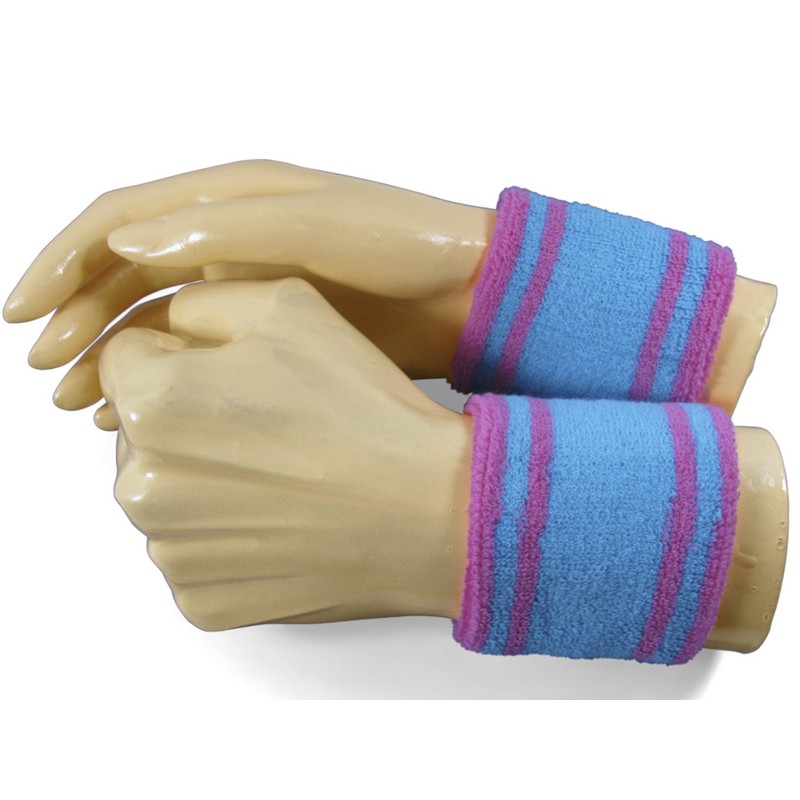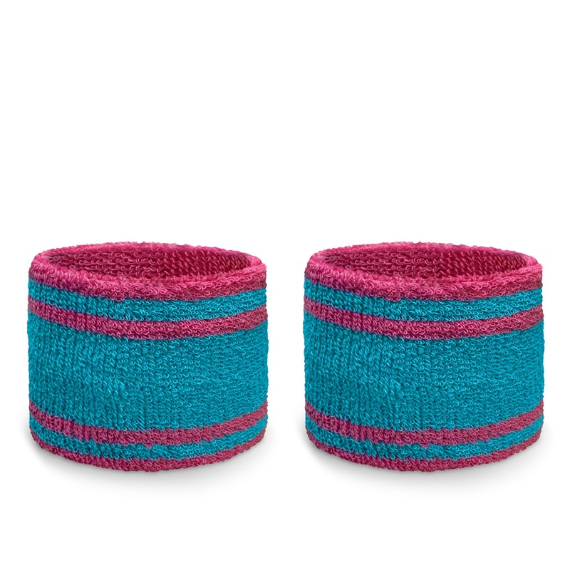Couver Light Sky Blue/Pink Stripes Sport Wrist Sweatbands Cotton for Sports & More (1 Pair)