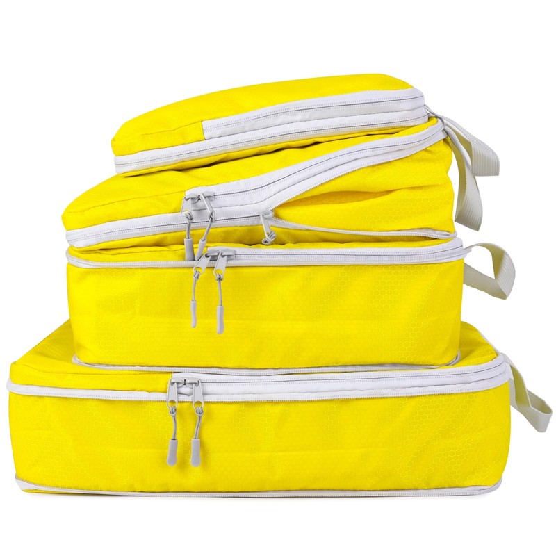 COVAX 4 Set Compression Packing Cubes, Travel Luggage Organizers and Storage Packing Cubes (Yellow)