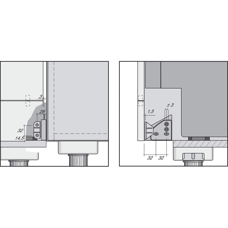 - When the door is closed, the fitting holds the panels in a vertical position. Can be used at a aperture height of at least 105 mm. For assembly, please refer to the detailed pictures