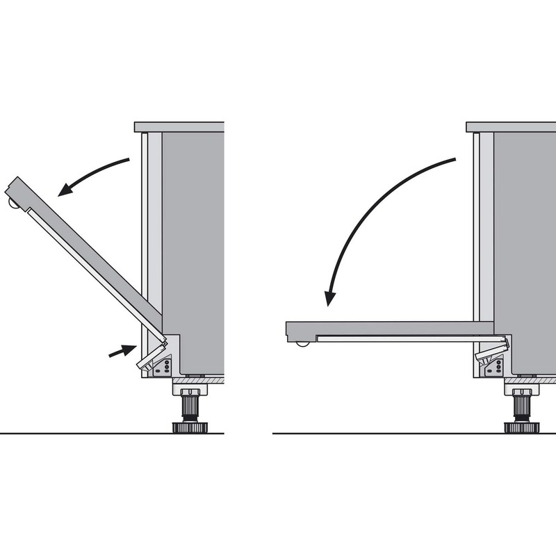 - For high dishwashers, a panel is hung under the door front. This cover must bend when opening. - A connection of the panel to the front can be done via a drilling hinge.