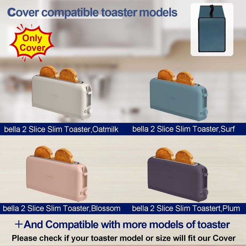 - Cover compatible with toaster cover models: This 2 slice toaster cover specially designed for Bella 2 Slice Slim Toaster (modle: 35165-063A/35117/35164-063A/35163-063A) and other 2-slice toaster oven models.(Note: Only cover is for sale, not toaster and please check if your toaster model and size will fit our covers).