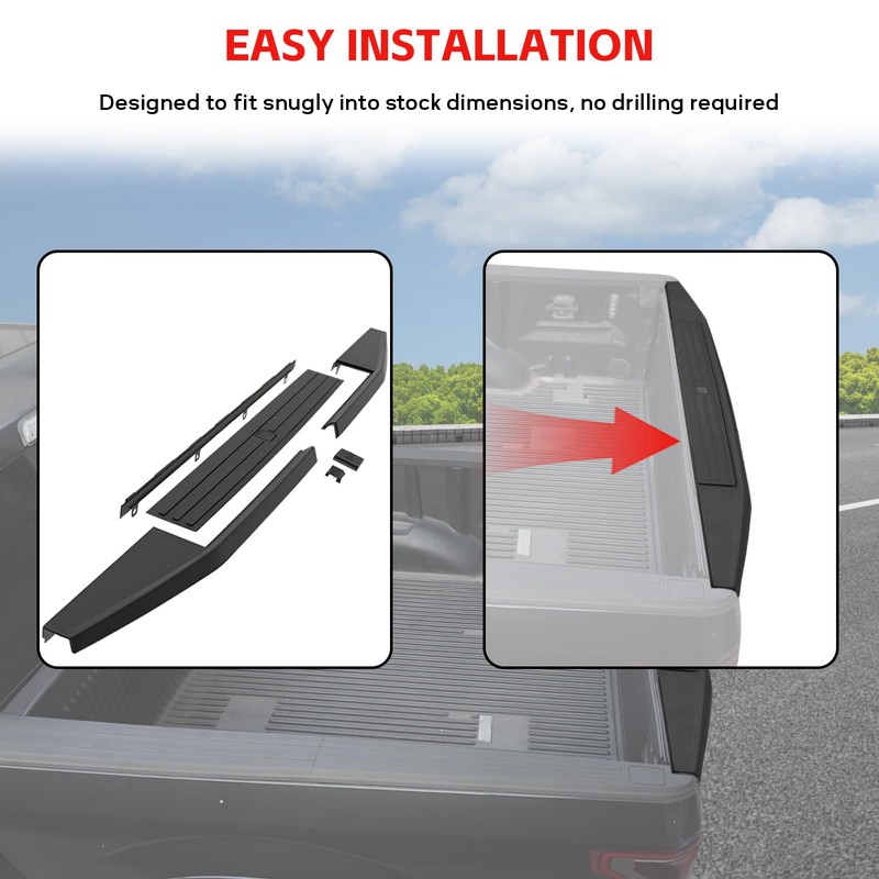 - Appearance Upgrade: The combination integrated tailgate molding cap features a smooth black surface with a matte texture, resistant to scratches and dust accumulation. It replaces deformed, cracked, or damaged original parts on your pickup truck, giving your vehicle's rear a fresh, new appearance while perfectly blending beauty with practicality