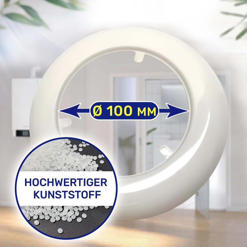 - Use: the cover rosette for gas vent pipes is compatible with any standard gas vent pipe. The inner diameter is 100 mm