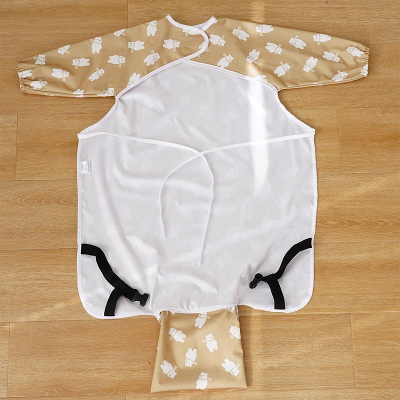 Coverall Baby Bibs for Eating,Long Sleeve Bibs for Babies,Adjustable Toddler Bibs Attaches to Highchair and Table,Waterproof Smock Bib(White Bears)