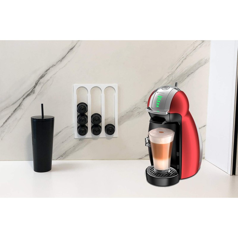 - Functional and personalised decoration: In addition to functionality, this dispenser also serves as a decorative element in the room. The ability to organize your capsules by colour or taste allows you to create a visual mosaic that not only serves as a practical indicator, but also as a design focus that invites creative personalization in your daily coffee routine.
