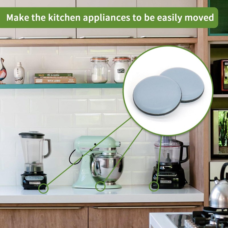 - Appliance sliders for kitchen appliances: Using a appliance sliders on the bottom of a kitchen appliances raises the height of the bottom of the appliance, the bottom of the machine is less likely to come into contact with water and also makes it easier to push, drag or even rotate the appliance.It's a usefull kitchen gadgets.