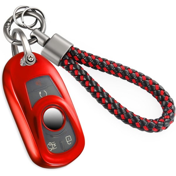 Coverforkey for Buick Key Fob Cover with Upgraded Anti-Lost Metal Braided Rope Keychain, Exquisite Soft TPU Case for Enclave Encore GX Envision LaCrosse Regal Tourx (Red, A)