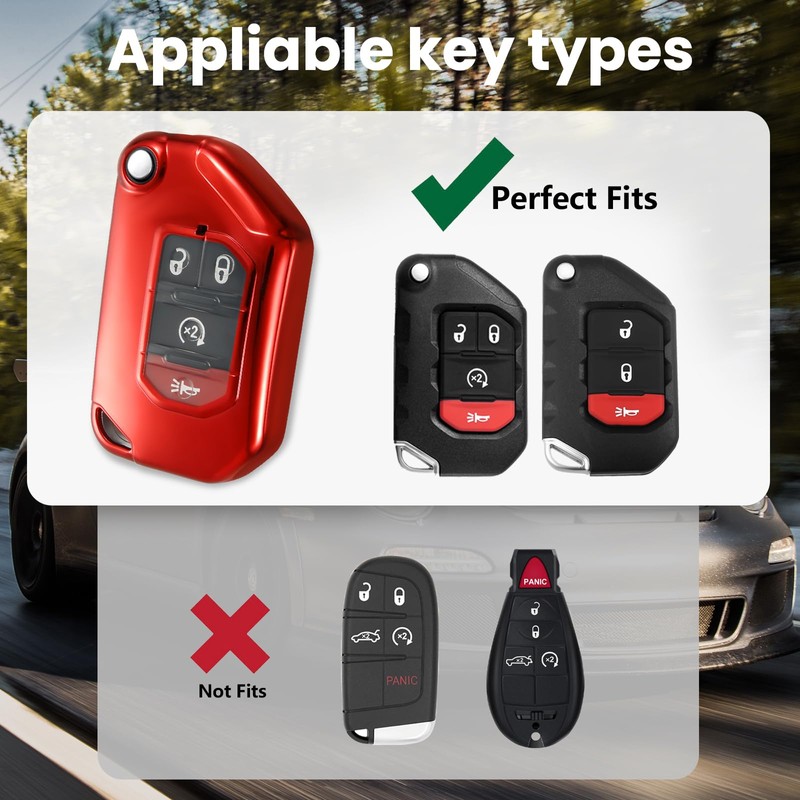 • Coverforkey key fob cover compatible with Jeep Wrangler Gladiator JL Sahara Rubicon(4 buttons). Based on the picture,even the same model car, due to different years of manufacture,the keys may also be different.