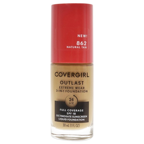 Covergirl Outlast Extreme Wear 3-in-1 Full Coverage Liquid Foundation, SPF 18 Sunscreen, Natural Tan, 1 Fl. Oz.