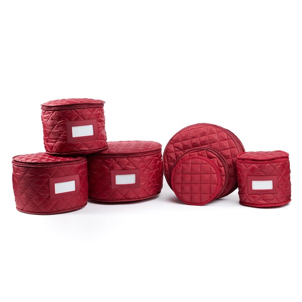 Covermates Keepsakes - Dish Storage Set - Padded Protection - ID Window - Stain Resistant - Machine Washable - China Storage, Red