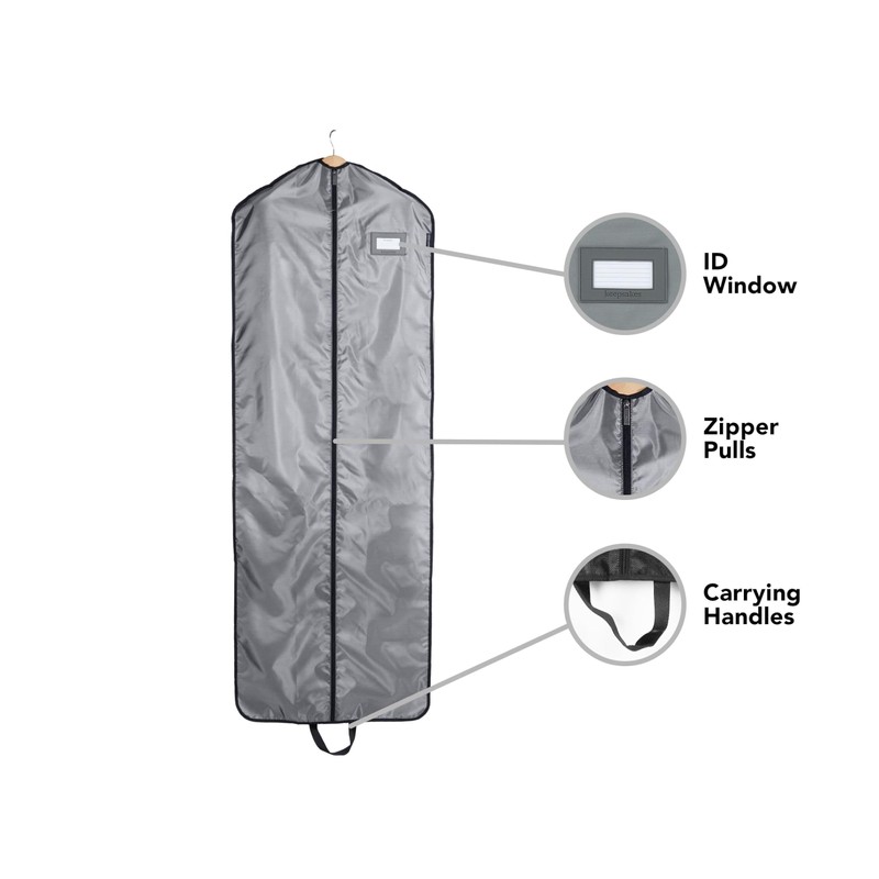 - Secure & Organized Garment Storage - Designed with durable fabric to keep your garments protected. Features an ID window for easy labeling, carrying handles for convenience, and a full-length zipper for hassle-free access. Ideal for transporting formal attire.