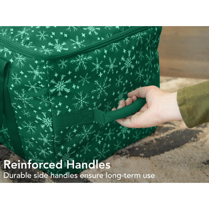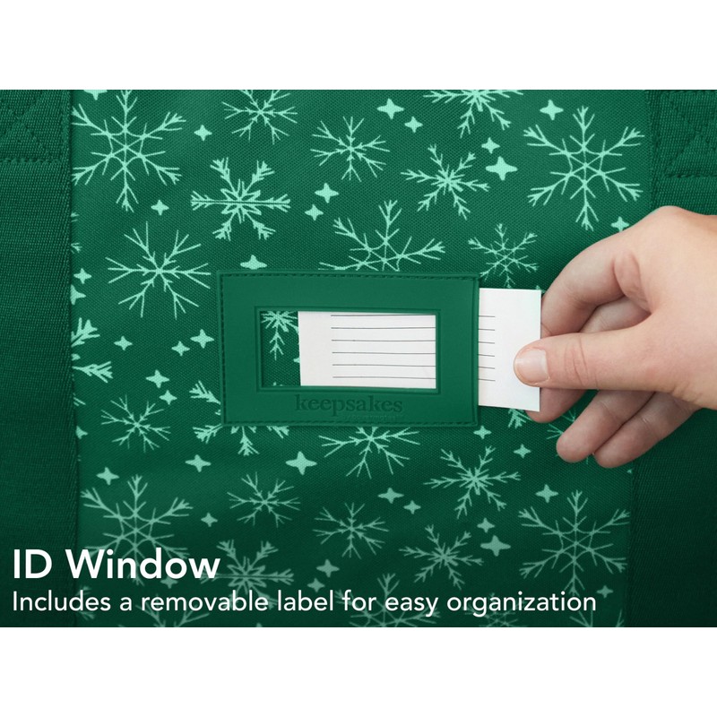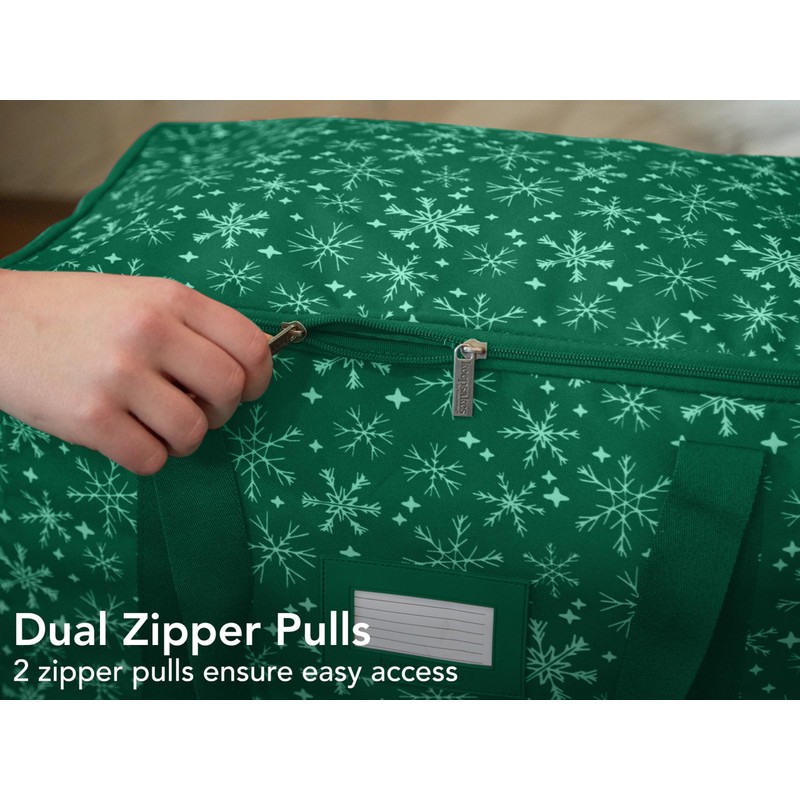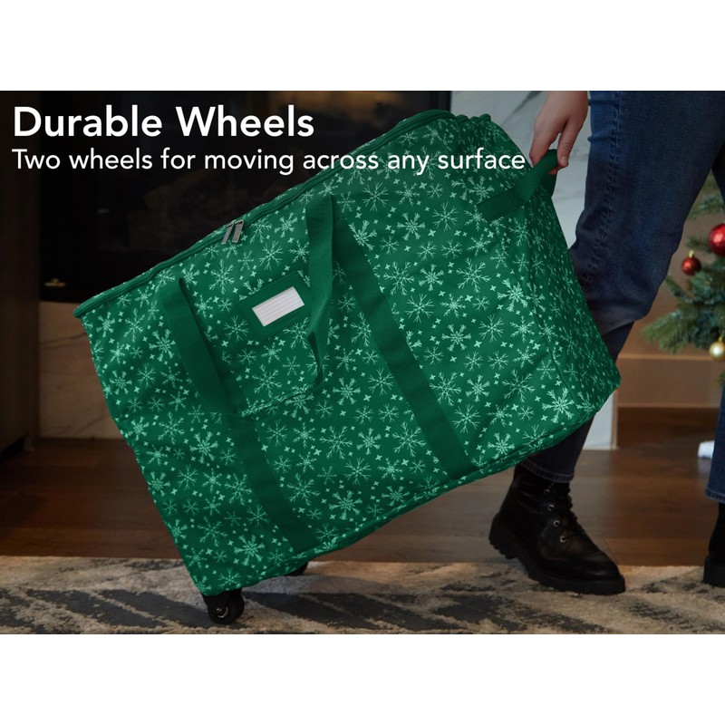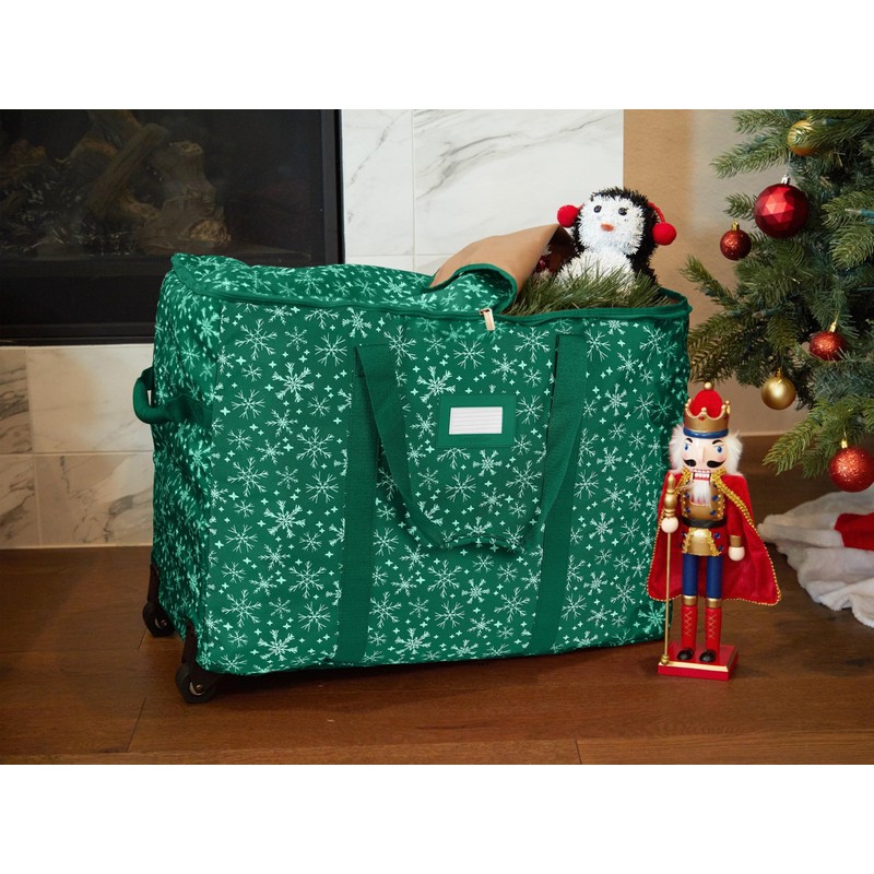 Covermates Keepsakes Rolling Treasurekeeper Storage Bag - Carrying Handles, ID Window, Dual Wheels - Holiday Storage, Green Snowflake
