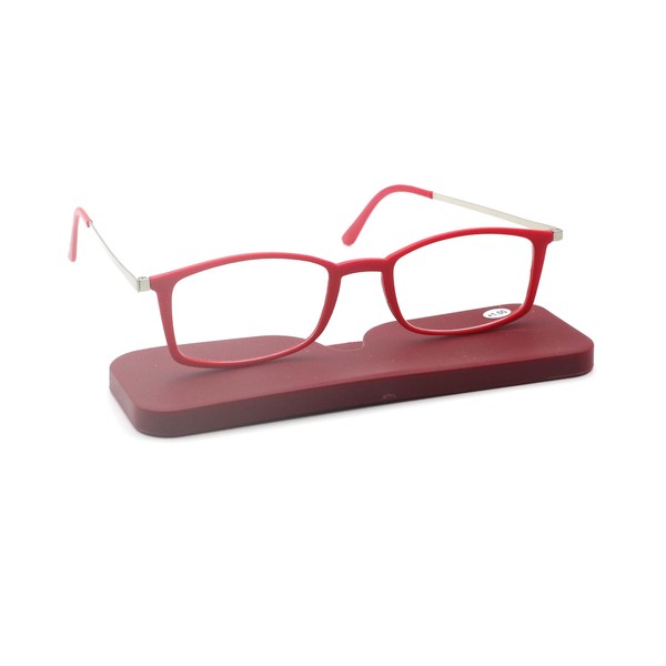COVESATO Lightweight thin Square Reading Glasses Slim Mini Pocket Readers for Women Men with Portable Case (Red,1.50)