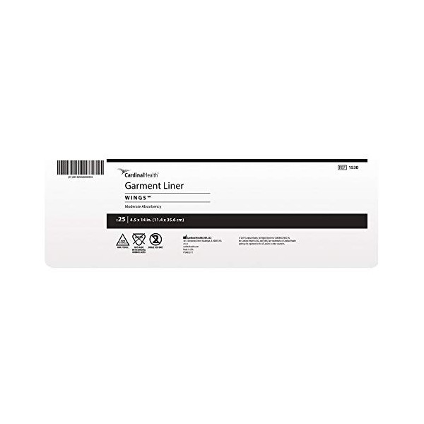 Covidien 1530 Simplicity Garment Liner, Moderate Absorbency, 4-1/2" x 14" Size, Pack of 25