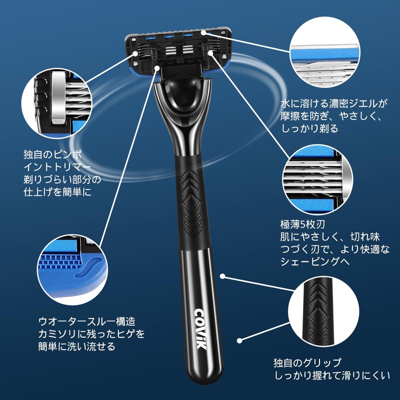 - COVIK Men's Ultra Thin 5-Blade Razor with Vitamin E Dual Smoother and Soft Cushioning