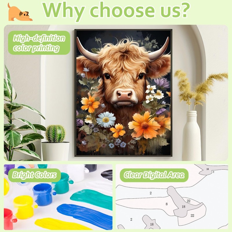 - [HD-Color Canvas]: Different from other adult paint by numbers kits ,our paint by numbers kits uses high-definition color canvas.The number area is easier to distinguish, and the paint is easier to adhere to it. Can prevent eyestrain and make painting easier.