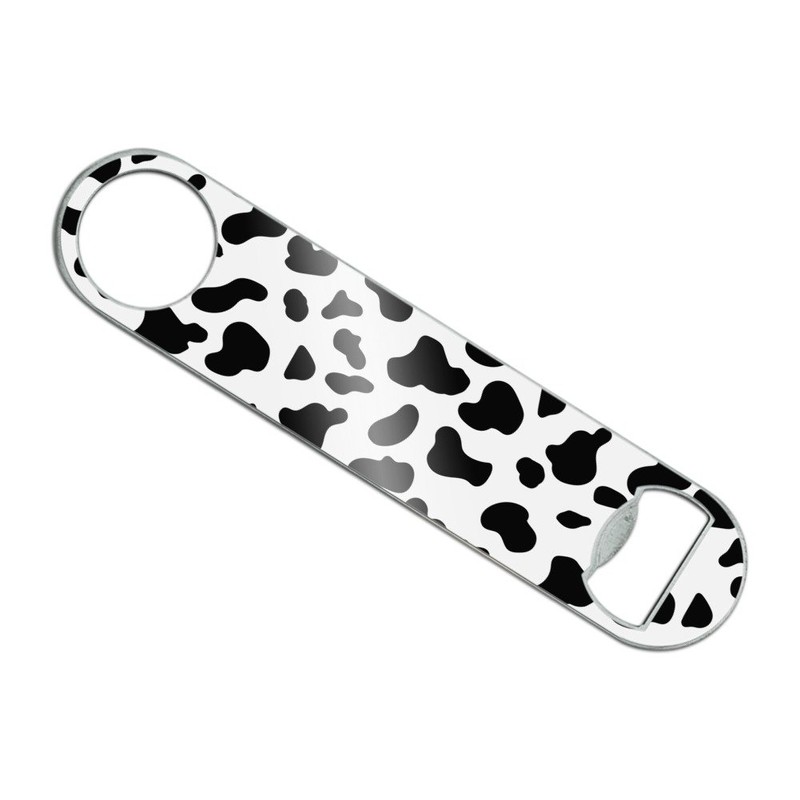 Cow Print Black White Stainless Steel Vinyl Covered Flat Bartender Speed Bar Bottle Opener