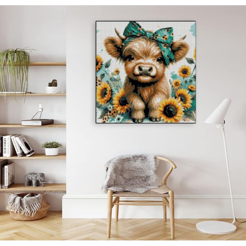 Cow Stamped Cross Stitch Kits for Adults Beginner, Sunflowers Counted Cross Stitch Kits Printed Stitching Cute Patterns Dimensions Needlepoint Art Crafts Embroidery Kits for Adults Beginners