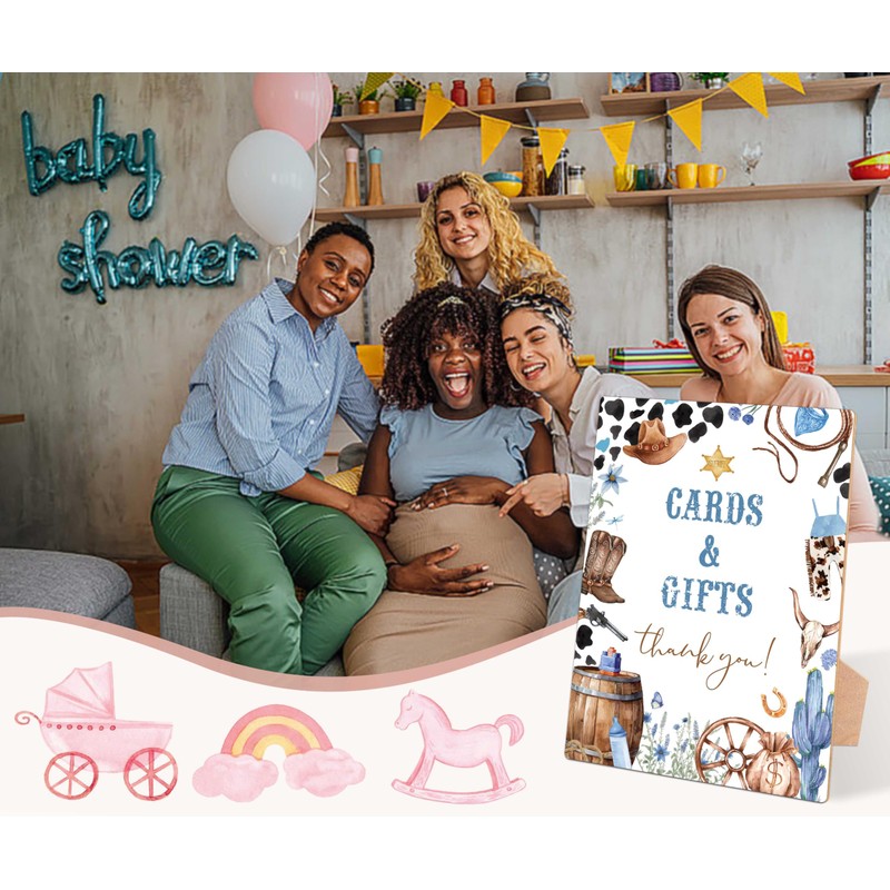 Cowboy Baby Shower Table Sign, Cards and Gifts Sign, Pack of 1 Wooden Tabletop Sign with Stand, Wild West Rodeo Baby Shower Supplies, Gender Reveal Party Decorations - RG23