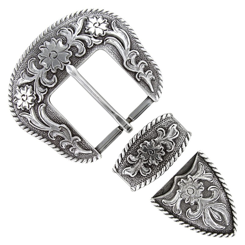 Cowboy Cowgirl Western Floral Engraved Replacement Belt Buckle Set fits 1-1/2"(38mm) Belt Strap - Antique Silver