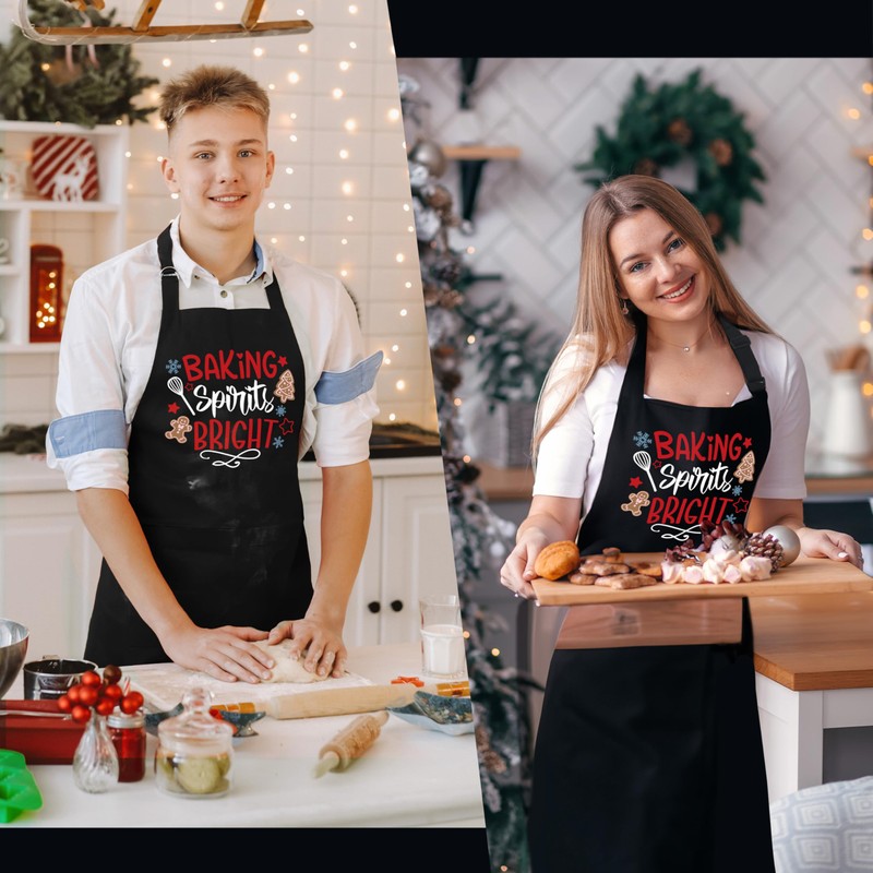 COWEB Baking Spirits Bright Christmas Aprons for Women with Pockets, Gifts for Bakers, Christmas Apron, Christmas Bakery Kitchen Decor, Waterproof Adjustable Bib Apron for Cooking Kitchen