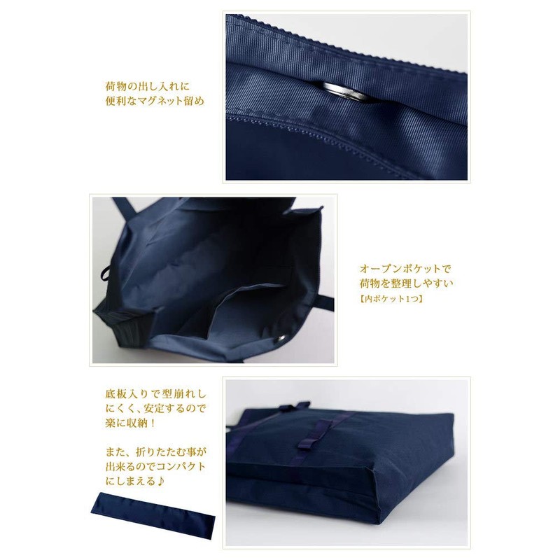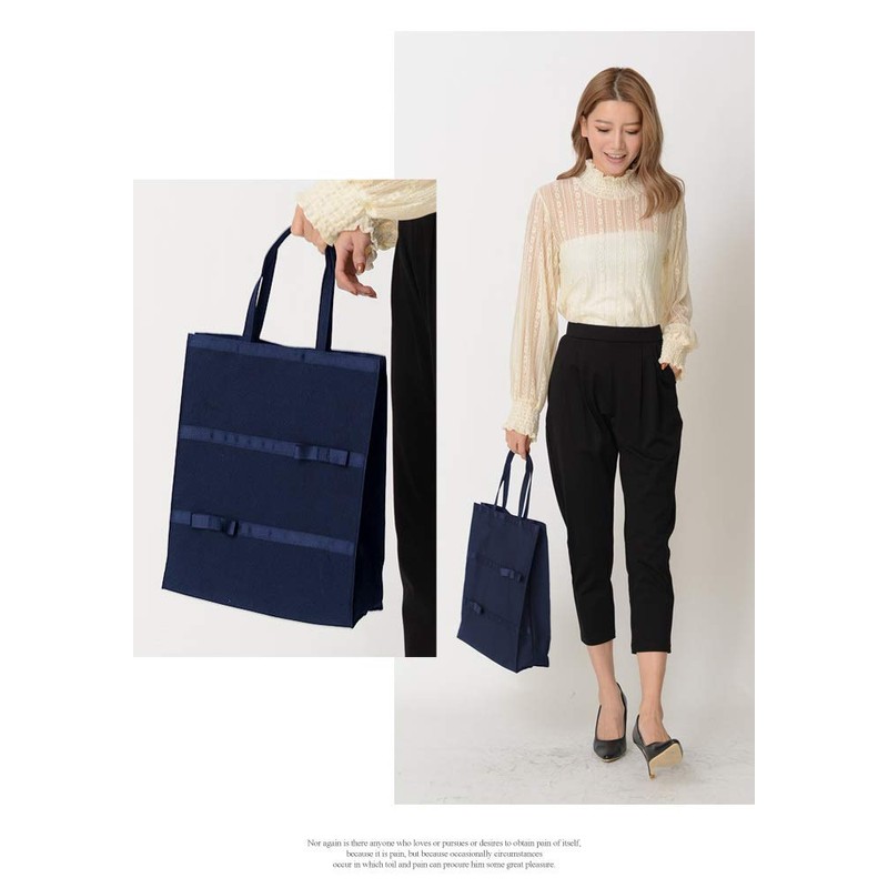 An asymmetrical ribbon design makes this sub bag an accent to your outfit. The easy-to-use size and simple design make it useful for ceremonies and everyday use. The wide square shape provides excellent storage capacity. It is large enough to easily fit A4 sized files. The gusset allows you to store your belongings on its own and not bulky, making it very convenient. The handle is finished with a smooth fabric that is comfortable to hold for a long time. It is not only great for weddings and parties, but also for school related events such as entrance ceremonies, examinations, and classrooms. Depending on your computer settings, the color of the actual product may differ slightly from what you see on your screen. Thank you for your understanding.