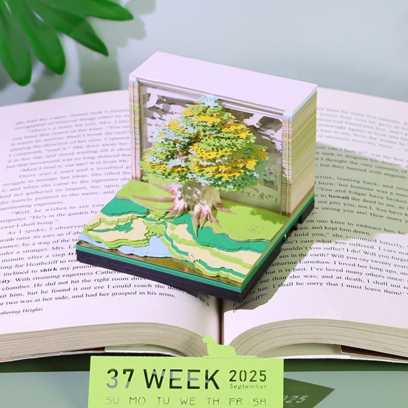 Cowenhey 3D Time Piece Calendar, 2025 Desk Calendar With LED Light, 3d Tree Memo Pad Creative Desk Calendar, Christmas Gift for Colleague Friend, Desktop Decoration