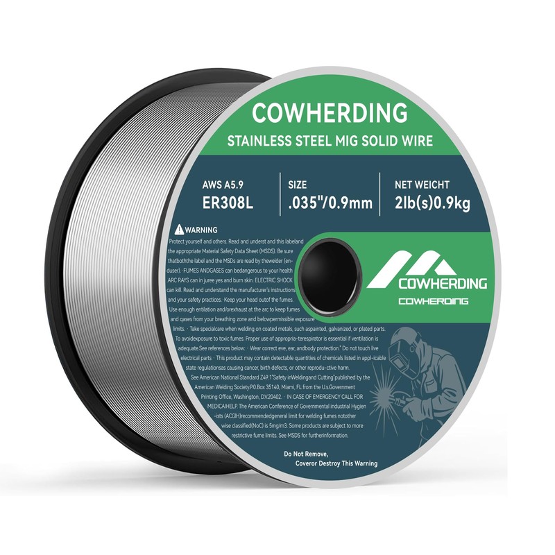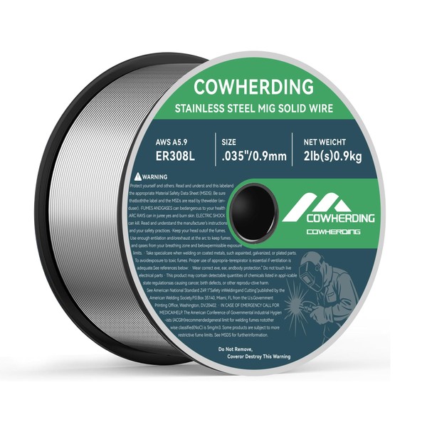 COWHERDING .035" ER308L Stainless Steel MIG Welding Wire, 2 Pound (1 Pack) – Solid Wire for SS Welding, Corrosion-Resistant, Low Spatter, All Position