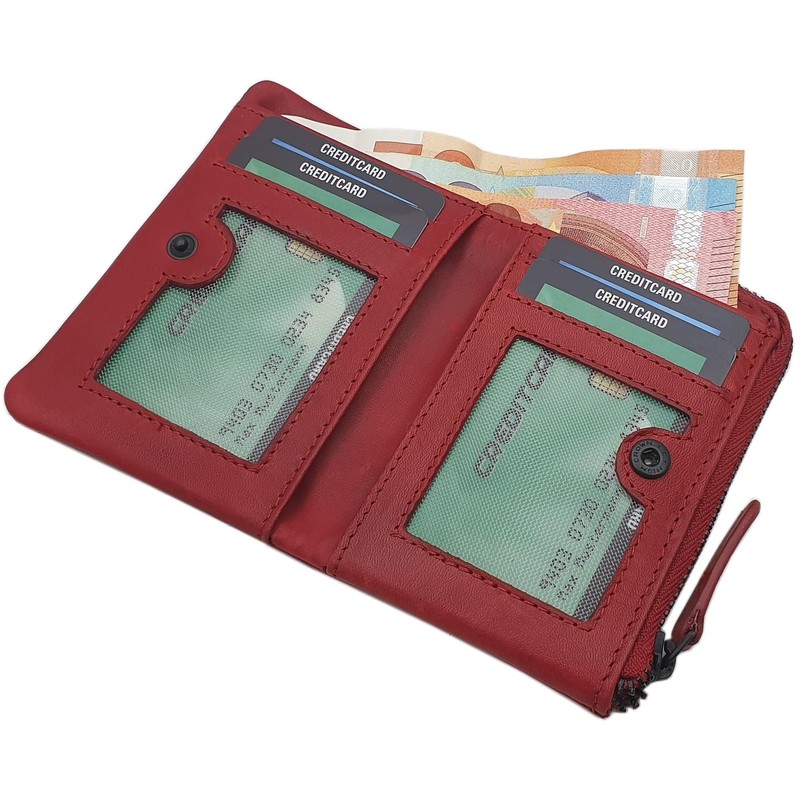 - A note compartment and a coin compartment, which is closed with a zip