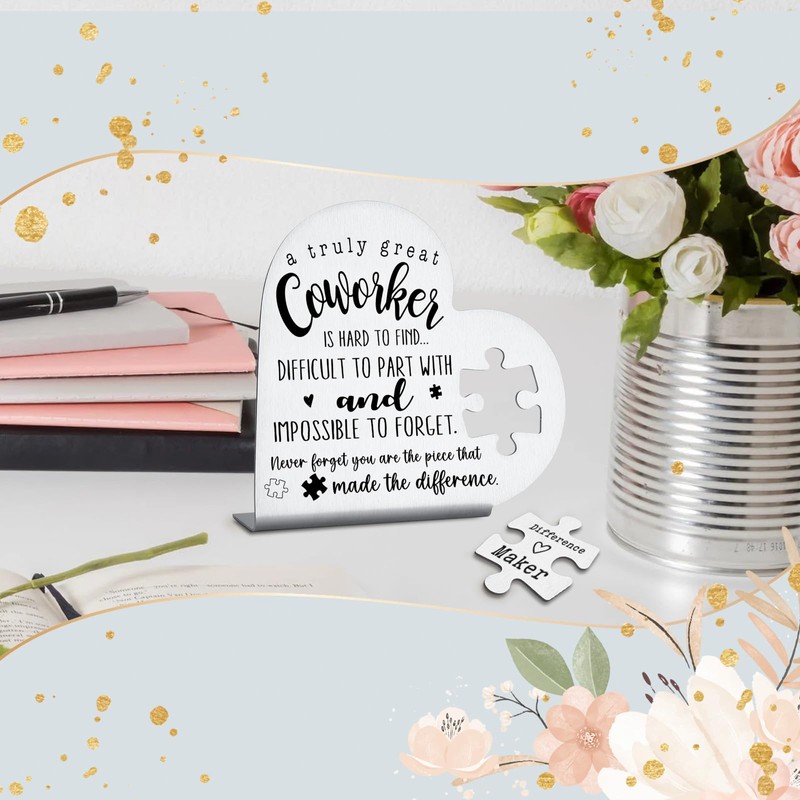 - 【 Unique Design】: A stainless steel tabletop sign, Heart shape stainless steel sign and puzzle piece pocket hug, unique creative combination set. Give it to your boss coworker teacher mentor professor friends as a beautiful and meaningful gift.