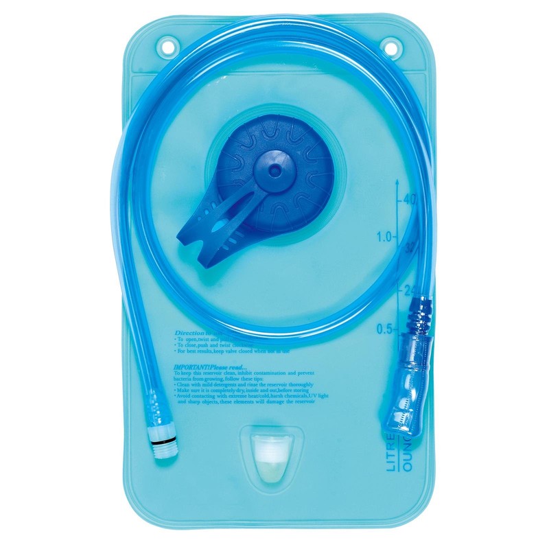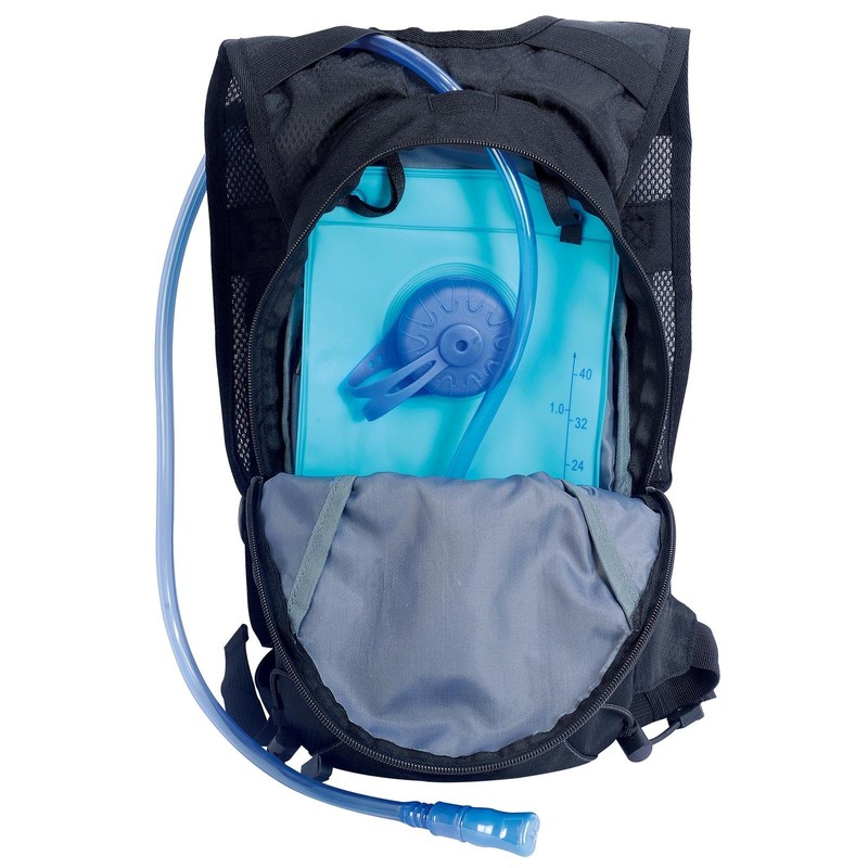 - Large main compartment with 1 litre hydration bladder, 1 front pocket with zip