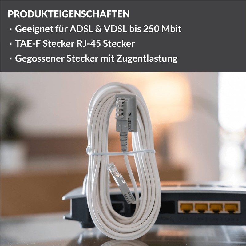 - Universally compatible: telephone cable to router with standardised, precisely fitting connections of the highest quality for common DSL providers and routers - overview models in product description
