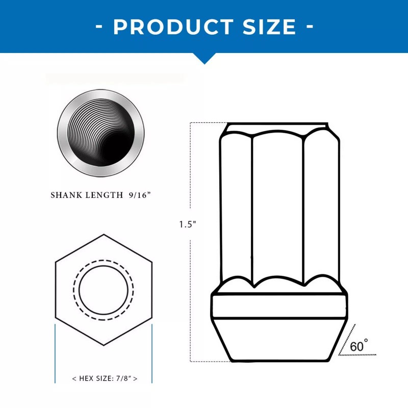 Coyote Chrome Large Seat 9/16 - 18 OE Ram Acorn Lug Nut with 7/8 Inch Hex OEM Stock