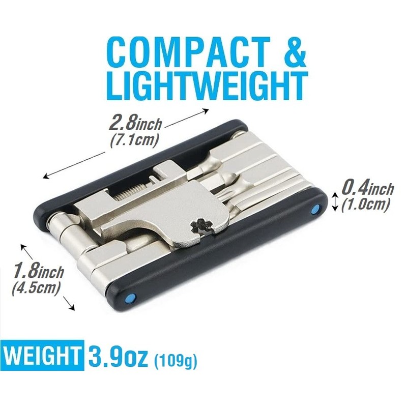 - COMPACT, SLEEK & LIGHTWEIGHT – Mini multitool is only 1.0cm (0.4 inches) thick, 7.1cm (2.8 inches long) and 4.5cm (1.8 inches) wide. Weighing at only1.9g (3.9oz), it is designed for easy storage in pockets or saddle bags.