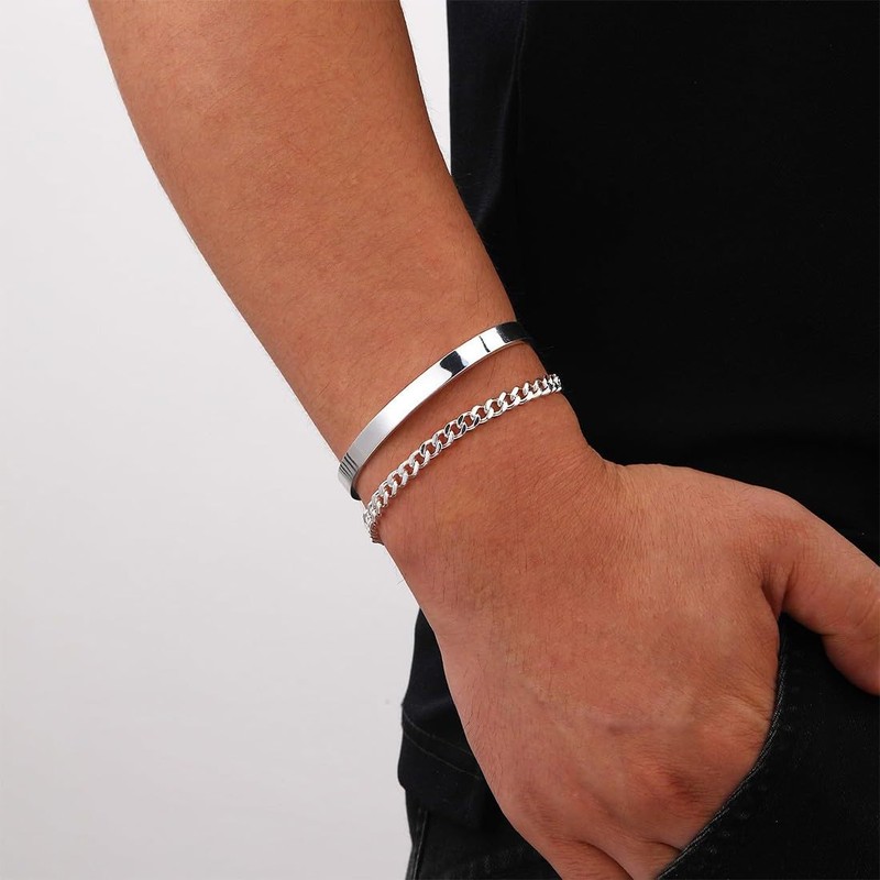 - Silver bracelet set: the men's bracelet includes an open bracelet and a shield chain. You can wear them individually or together, and their stylish design will make you look glamorous and fashionable.
