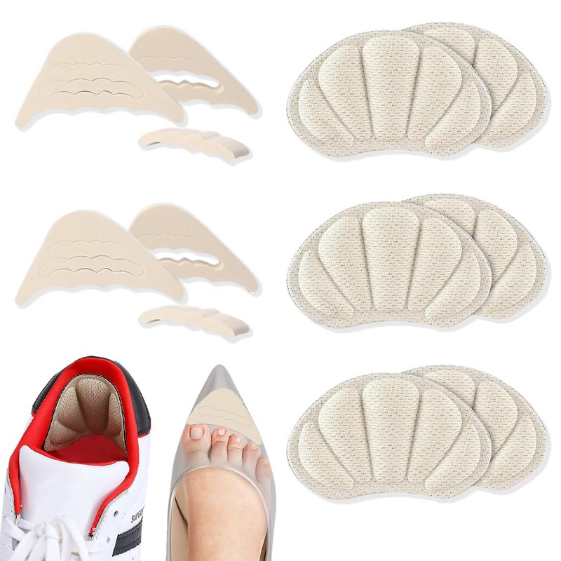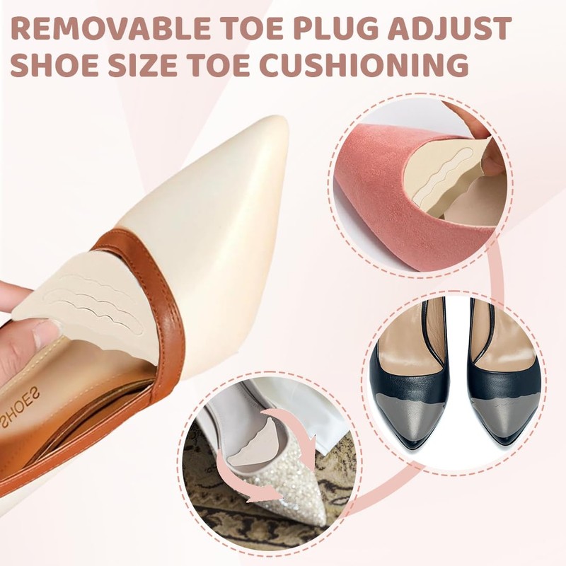 - QUANTITY - You will receive 2 pairs of nude adjustable toe caps to fill in the front of the shoe. 3 pairs of nude insoles, heel protectors for men and women shoes to improve fit. Our large insoles are suitable for all shoe types.