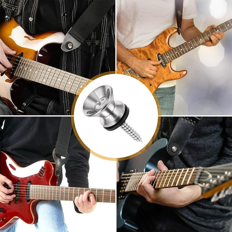 COYUN 6 Stück Gitarrengurt Knöpfe+6Stück Gitarren Gurt Schlösser,Strap Blocks Gurtblöcke,Metallende Gitarrengurt Endknopf mit Befestigungsschrauben Gitarrengurtknopf Metall Endpin für Gitarre